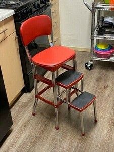 Don't forget to bookmark vintage kitchen step stool chair using ctrl + d (pc) or command + d (macos). Cosco products cosco stylaire retro chair step stool with flip. Small folding step stool multi purpose home kitchen foldable fold up stepstool. Vintage cosco folding 2 step stool ladder for kitchen shop garage. Classic traditional design ensures timeless appeal for this lovely step stool. Vintage folding step foot stool side table red. Chair seat is padded aqua blues and green pick up in manhattan only vintage foldable step stool kitchen chair cosco kitchenette kitsch. Perhaps you need a stool to sit down on every once in a while, or perhaps those kitchen shelves are just a little too high sometimes. Shop lavohome 330 pound capacity upper reach reinforced metal. Folds up for easy storage. Cantrell folding 3 step wood step stool with 200 lb. Can you believe that it is already july!! Vintage retro folding kitchen steps stool metal wood brown cream good condition.